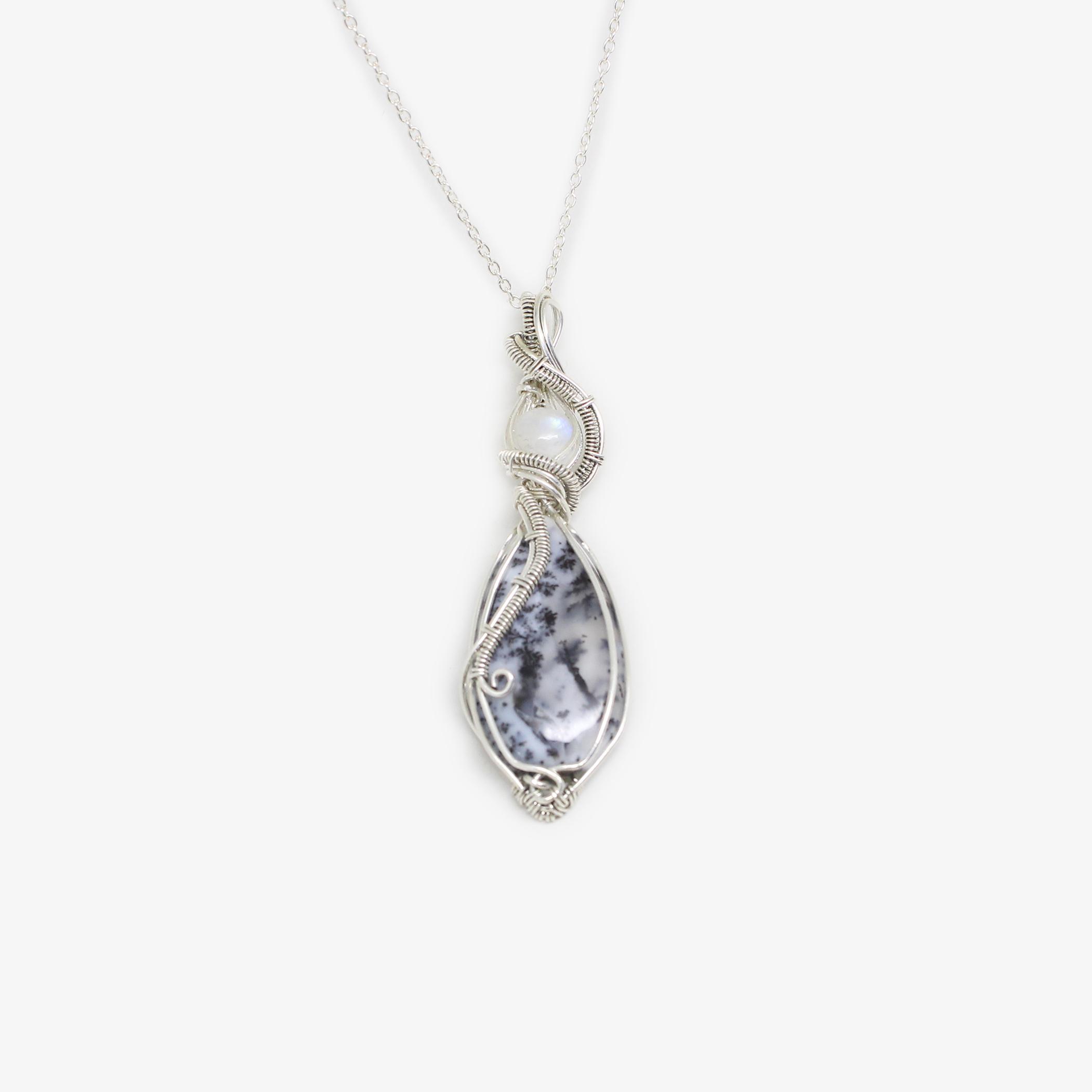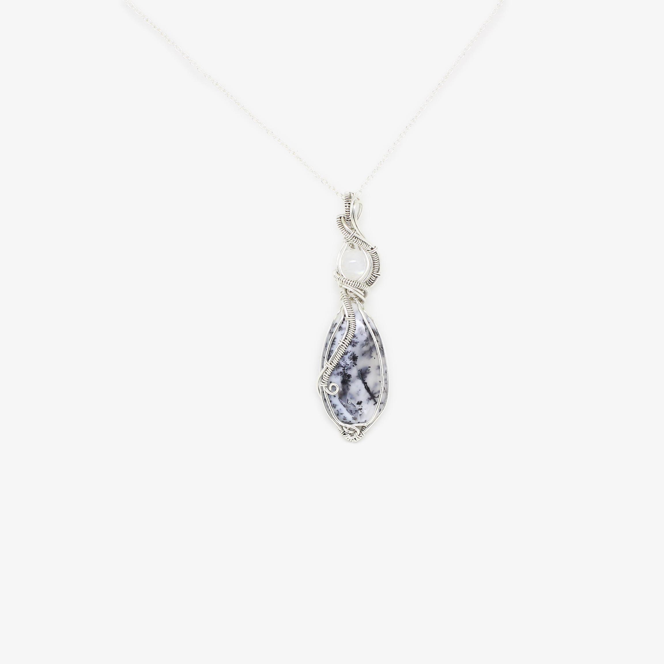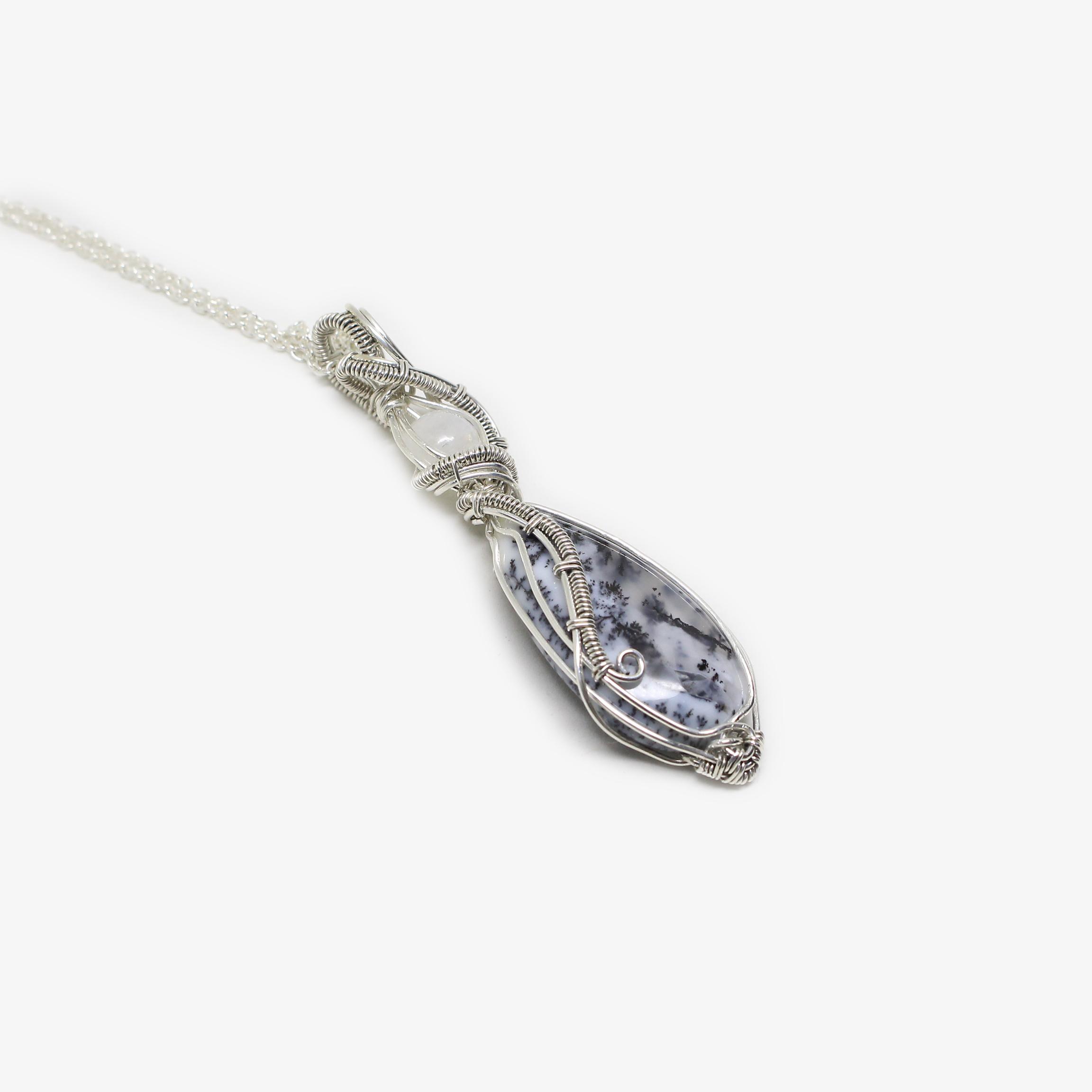 Ciondolo Sansa in Agata dendritica e Labradorite bianca – Gioiello artigianale in Argento 925