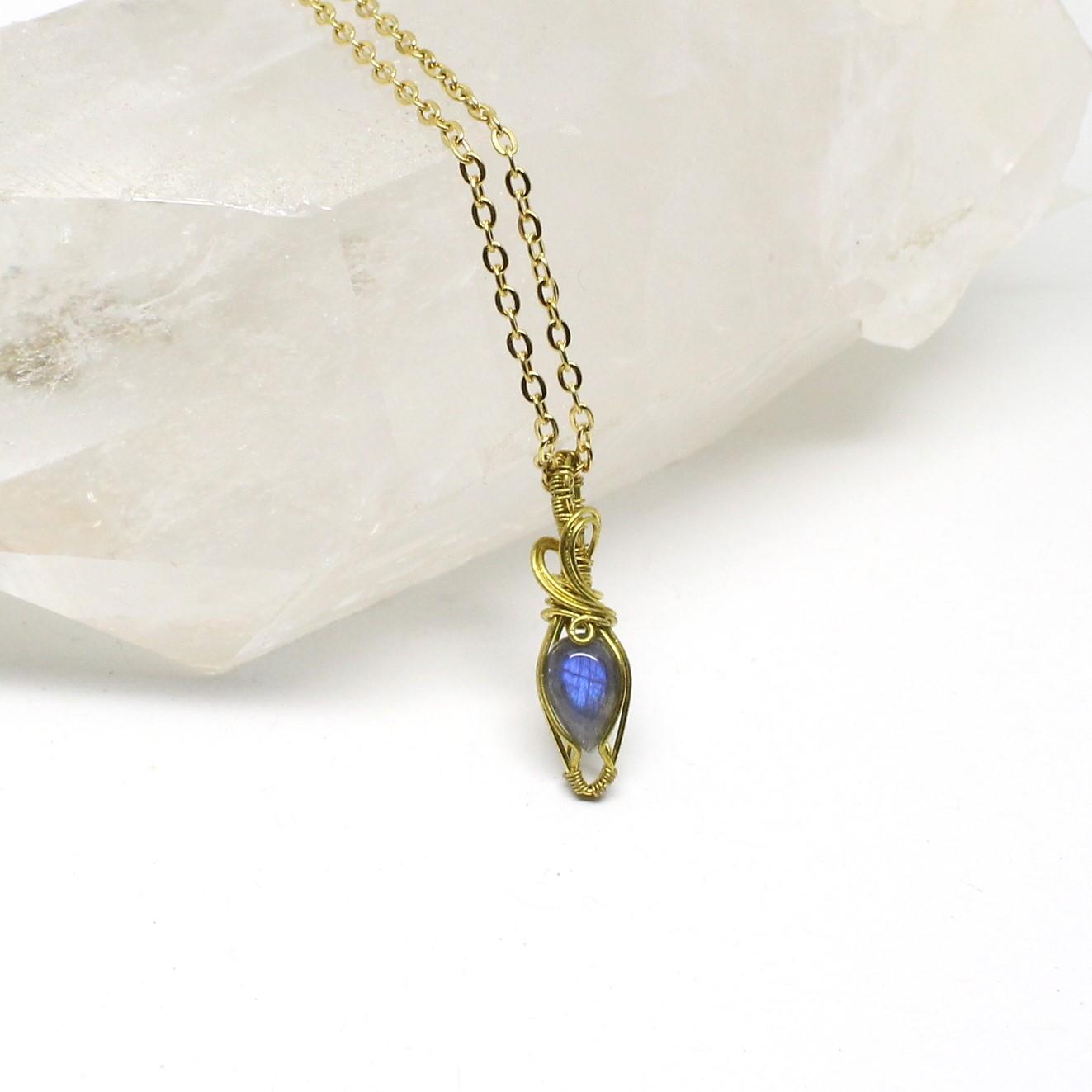 Il ciondolo Specchio è un gioiello artigianale con Labradorite e montatura in ottone naturalmente nickel free.